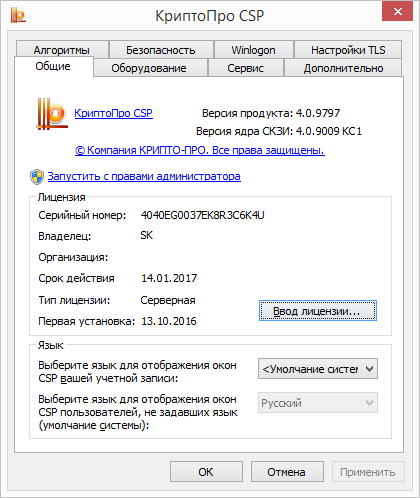 2) Приложите скриншот: "КриптоПРО CSP" - вкладка "Общие"
