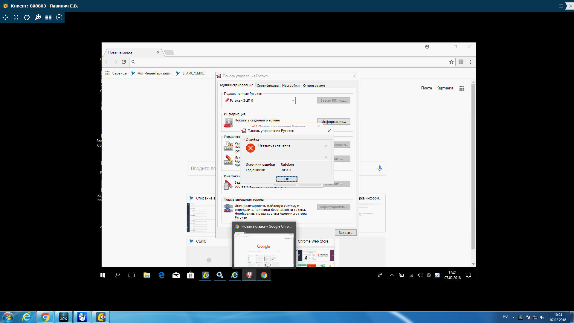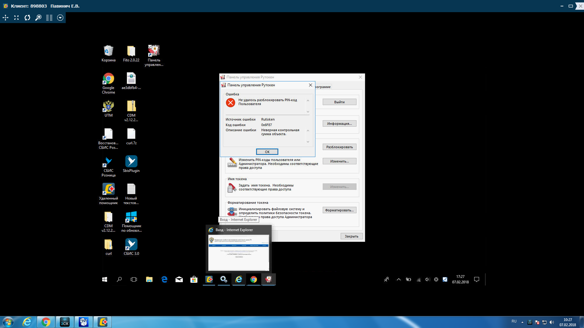 Ошибка при разблокировке рутокен ЭЦП 2.0