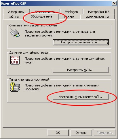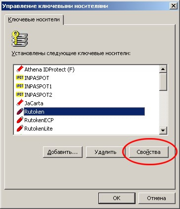 Выбираем Рутокен и нажимаем кнопку "Свойства"