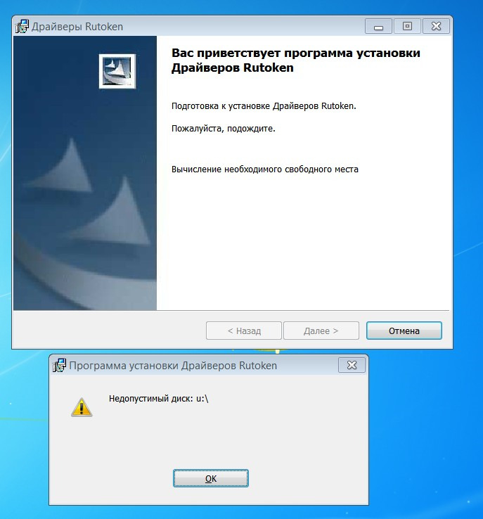 при установке на W7 происходит ошибка "Недопустимый диск" (скриншот приложен). Этот диск назначется групповой политикой.