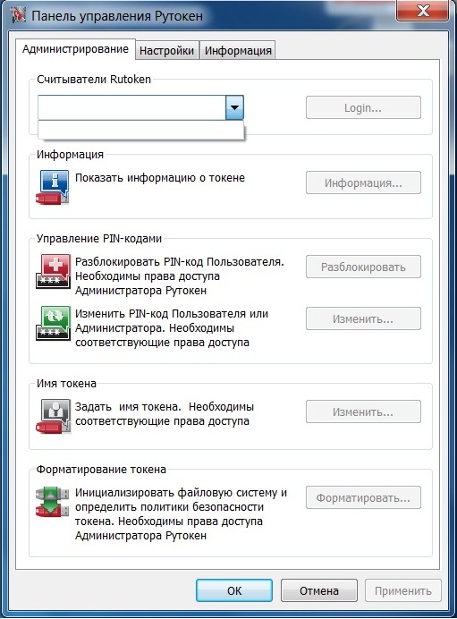 В панели управления рутокен не отображается ![]()