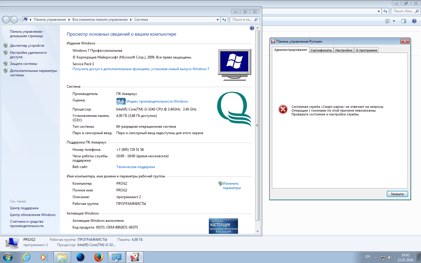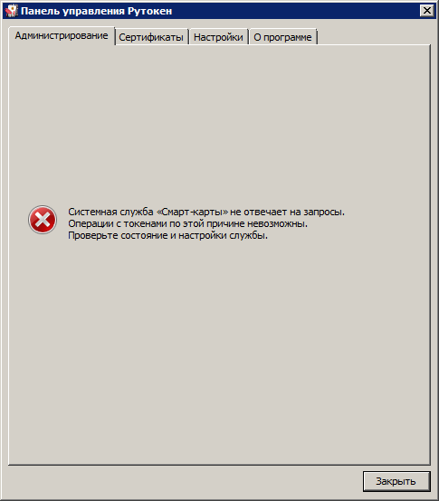 Проброс по RDP не происходит. Панель управления Рутокен в этом случае выдаёт следующее сообщение:![]()