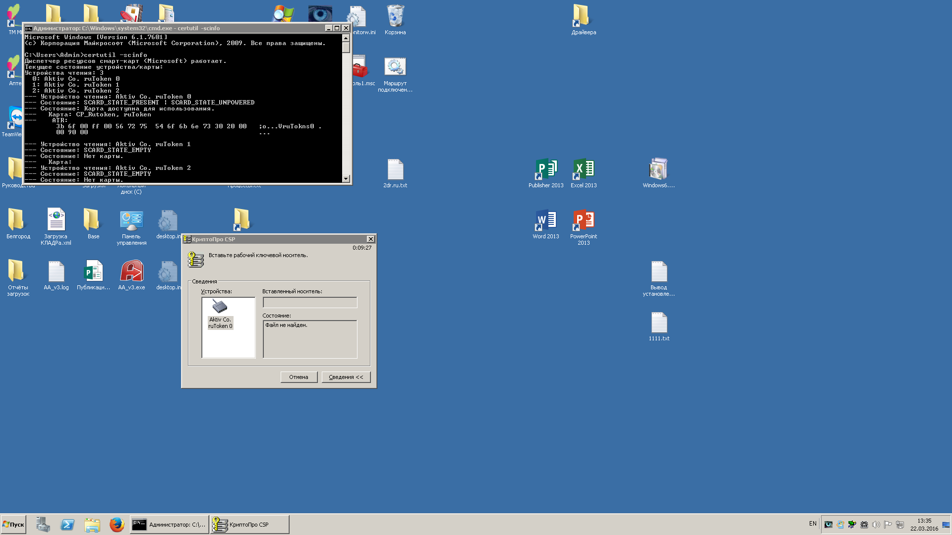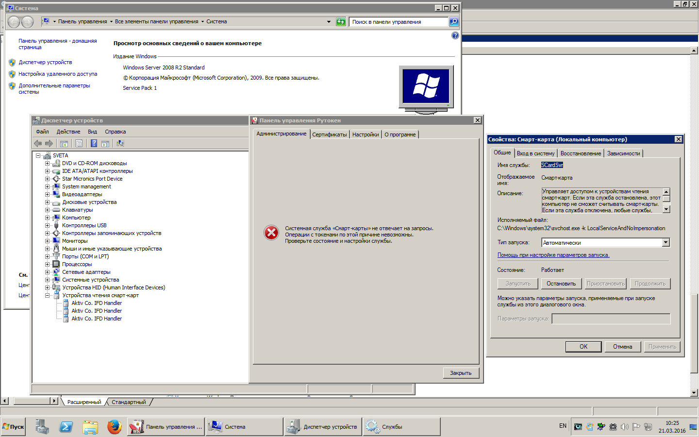 Если токен вставить в полноценный компьютер и произвести подключение к серверу по RDP, то проблем не возникает. Пробовали на нескольких АРМ под управлением OC Windows XP/7.