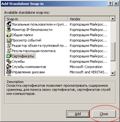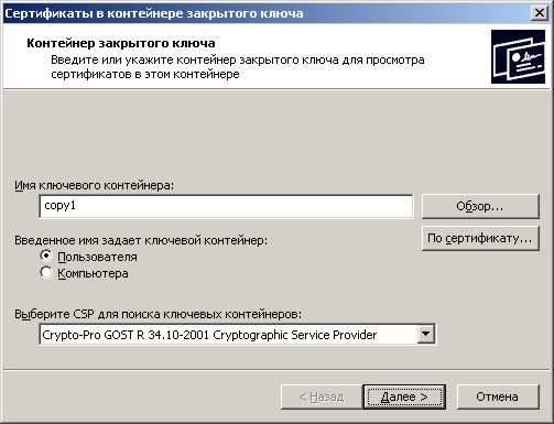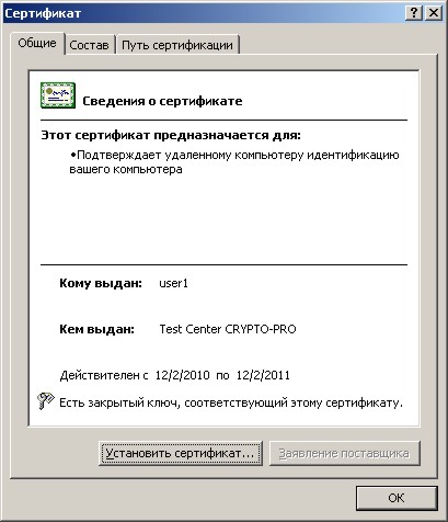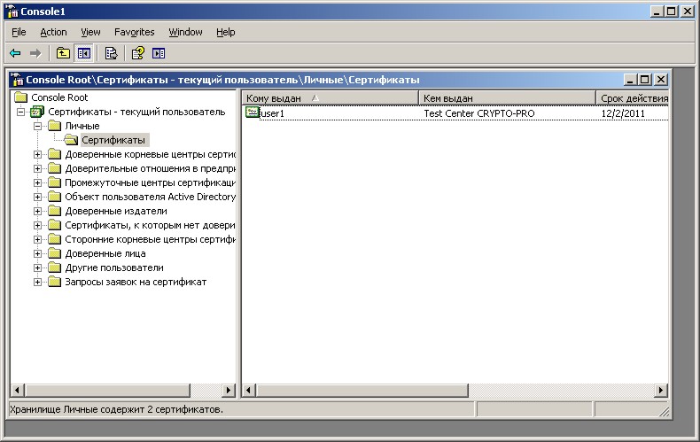 Установка сертификата КриптоПро в личное хранилище сертификатов