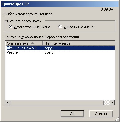 Нажимаем кнопку "Обзор" и выбираем контейнер на Рутокене:
