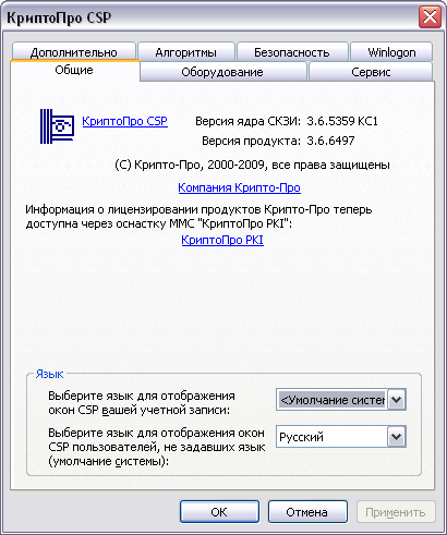 Версия Криптопро: