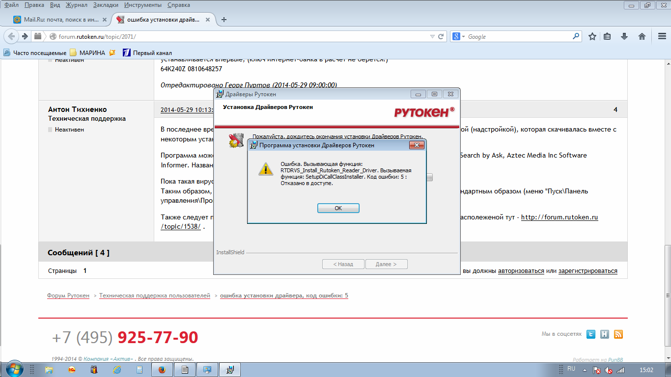Также следует проверить некоторые разрешения и настройки прав доступа по инструкции располеженой тут - https://forum.rutoken.ru/topic/1538/ .