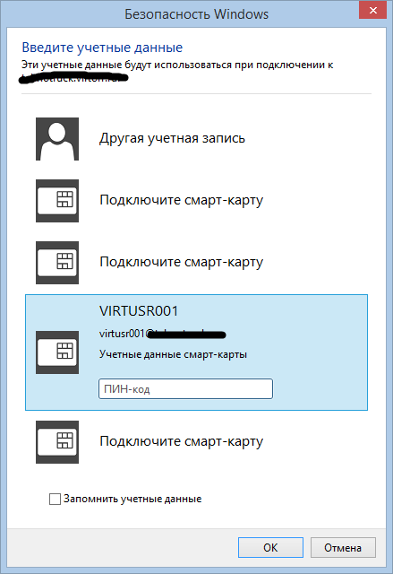 При подключении через RDP из Рутокена сертификат не читается в интерфейсе выбора смарт-карты пишет: