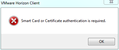При подключении с помощью Horizon Client, PIN не запрашивается, led на ключе не мигает, а клиент выдаёт ошибку: "Smart Card or Certificate authentication is required".
