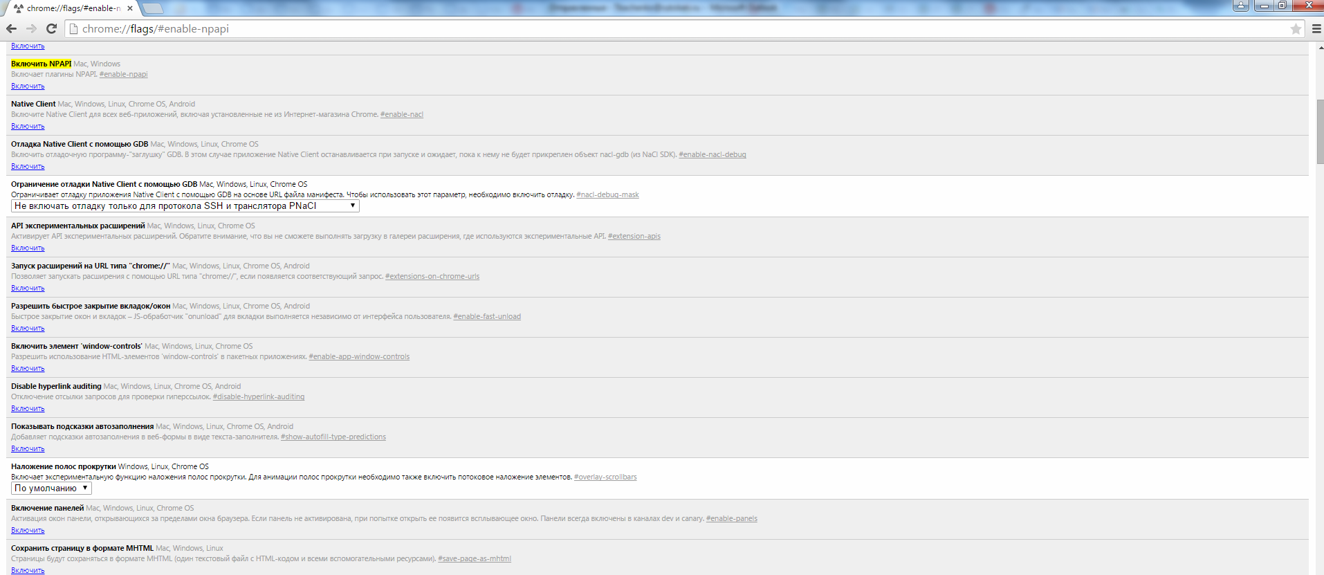 1. В адресной строке браузера Google Chrome ввести chrome://flags/#enable-npapi![]()