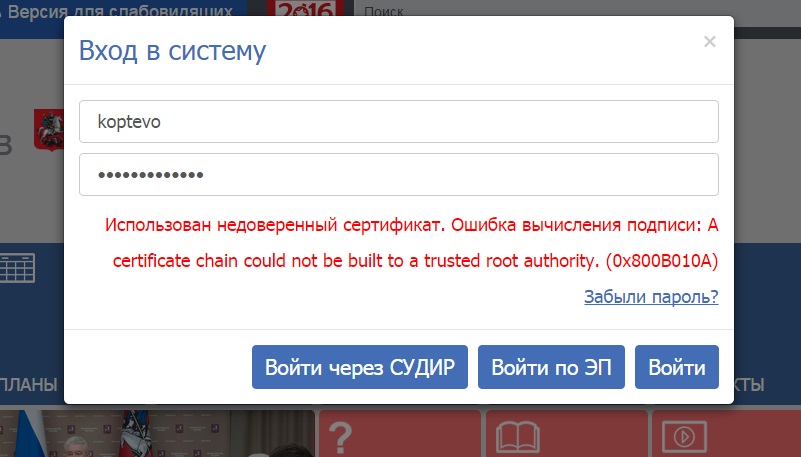 Не могу зайти по ЭП на http://zakupki.mos.ru/ выдает следующее сообщение.